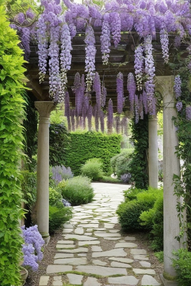 Wisteria’s cascading purple blooms smell fantastic and make you feel like you’re stepping into a fairy tale.