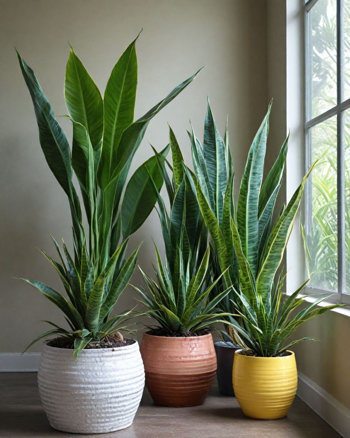 Sansevierias, also known as Snake Plants, are tough as nails and thrive in dim light.