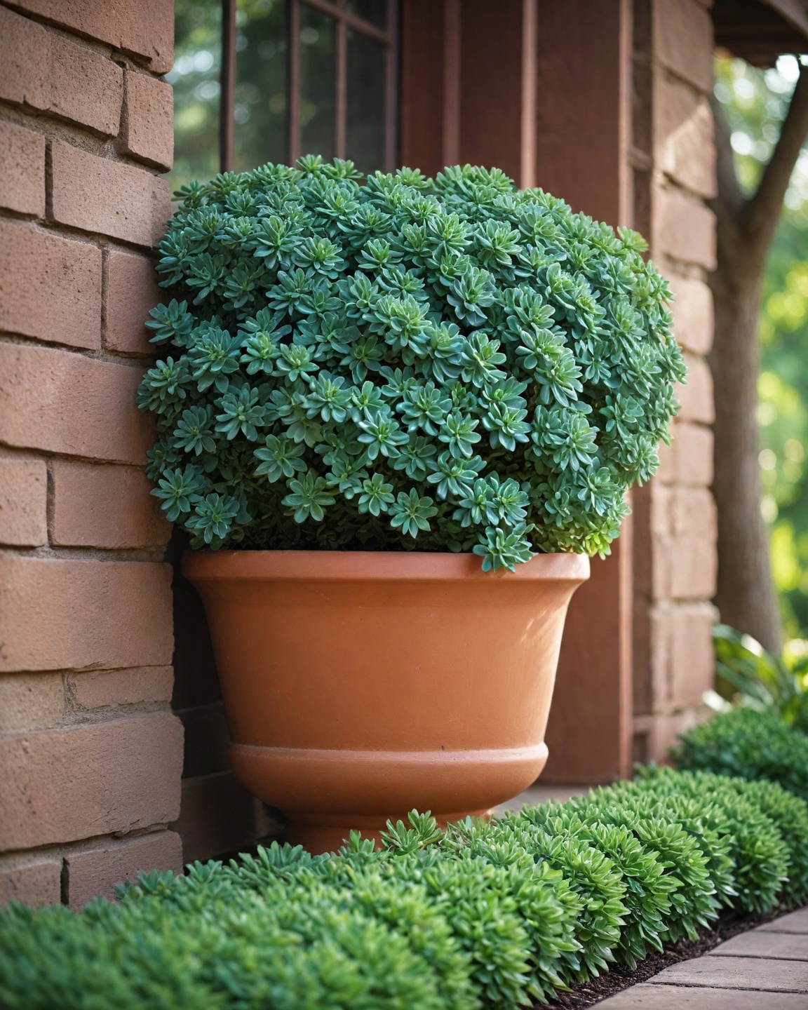 Burro’s Tail does well in the shade with its trailing, beaded stems.