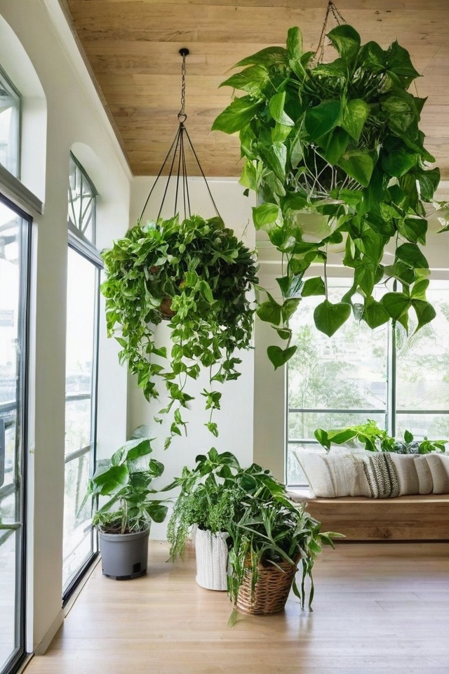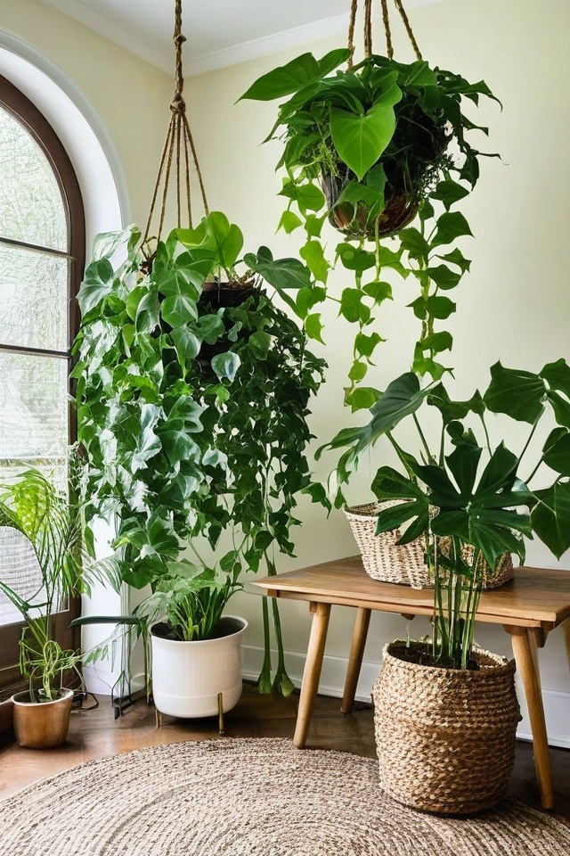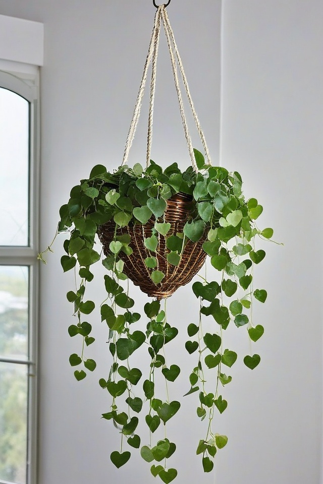 Philodendron comes in many varieties that are perfect for hanging baskets, adding a tropical feel to any room.