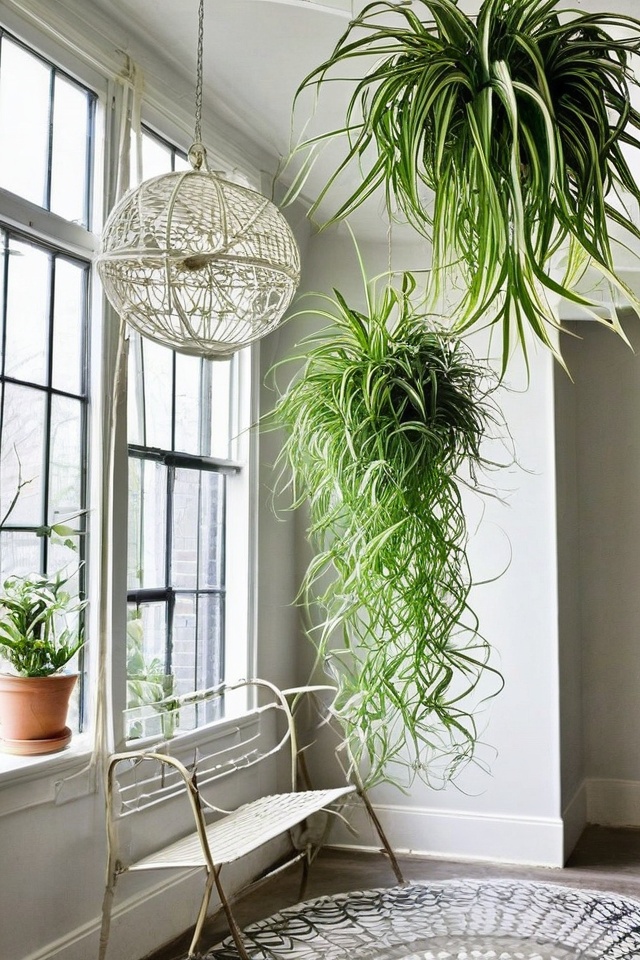 Spider Plants are perfect for hanging baskets and their long, arching leaves create a striking silhouette.
