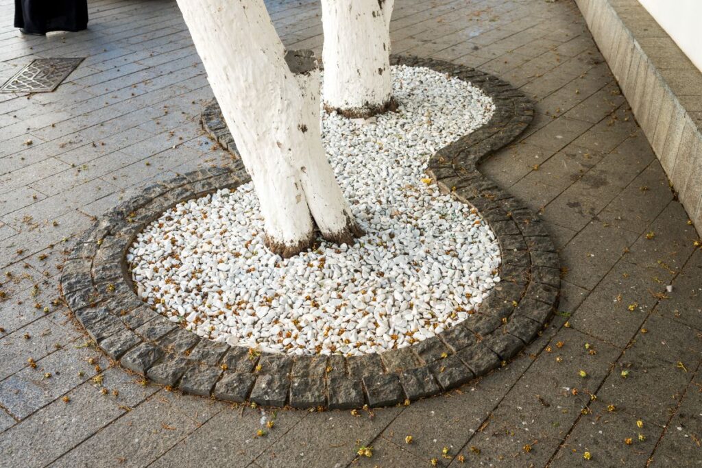 Employ decorative stones or gravel around your tree. This approach not only enhances visual appeal but also aids in managing drainage and controlling weeds. It’s an easy-to-maintain solution fitting for contemporary landscape styles.
