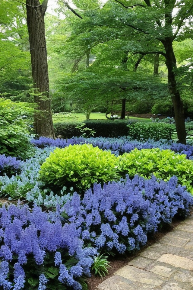 Ajuga, also known as bugleweed, makes a stunning ground cover with its purple-blue spikes and glossy foliage.