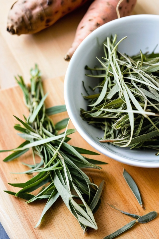 Sage brings a warm, earthy flavor that complements the natural sweetness of the potatoes.