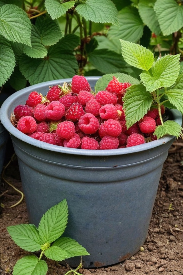 When growing raspberries in a pot, size matters! Go for a pot that’s at least 18 inches wide and deep.