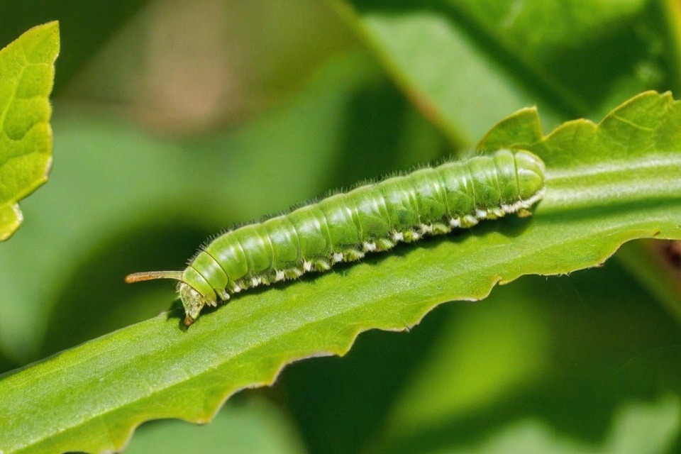The caterpillar in question is often called the “leaf muncher.” It’s small, greenish in color, and has some funky stripes. Be sure to look closely; you might need to get up close and personal with your garden or any plants you have outdoors.