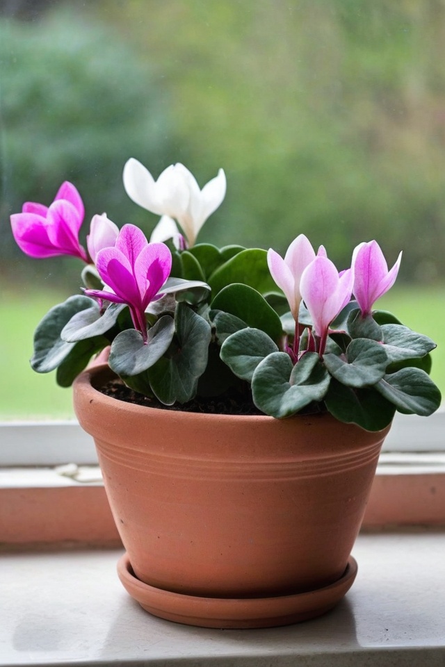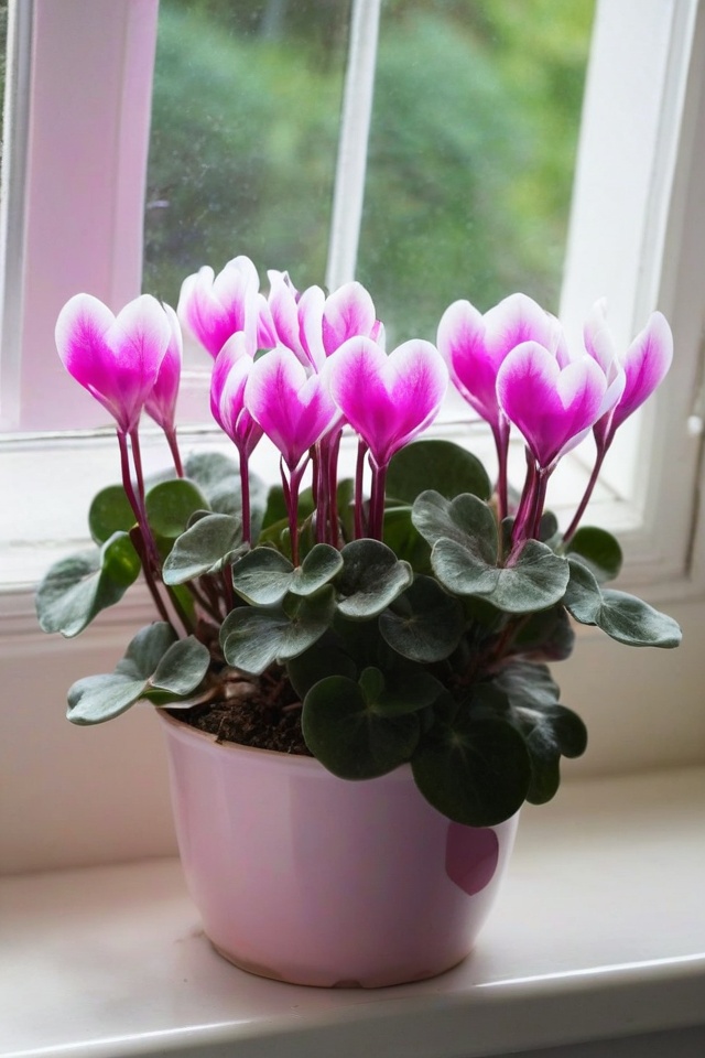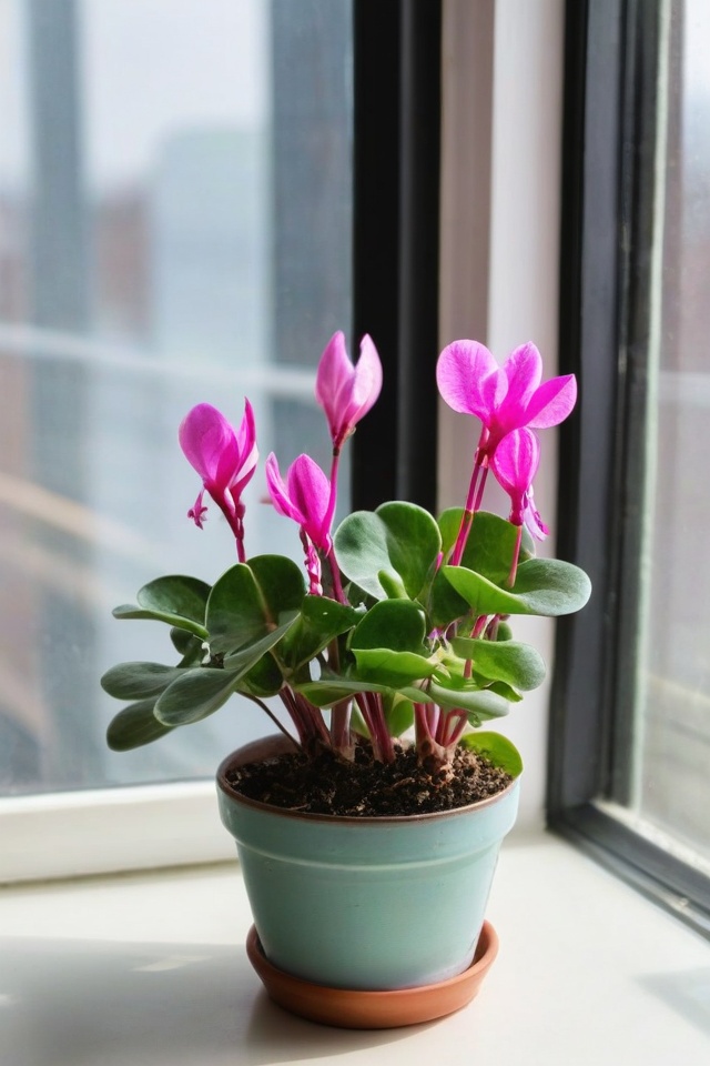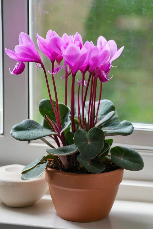 A north-facing window is just right. Your cyclamen will appreciate the steady light without getting scorched.