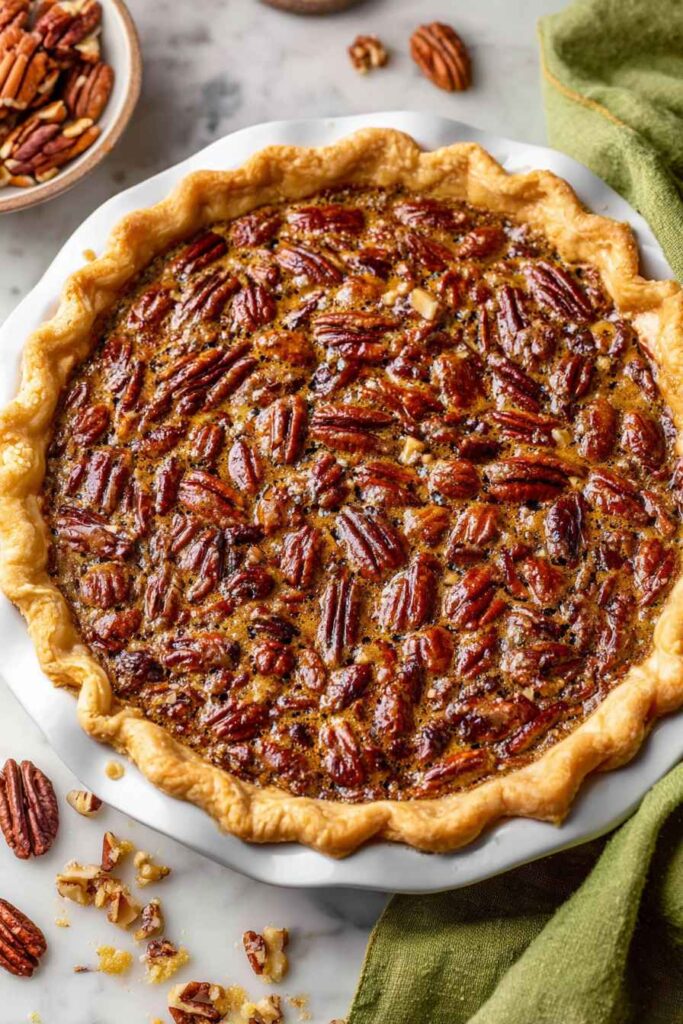This rich, sweet pecan pie is perfect on its own, but a scoop of vanilla ice cream on the side really takes it to the next level. The cool, creamy ice cream balances out the intense sweetness of the pie and creates a nice temperature contrast that’s absolutely delicious. You could also serve it with a dollop of fresh whipped cream or even a drizzle of caramel sauce if you’re feeling extra indulgent. A hot cup of coffee or black tea makes a great pairing too, since the slight bitterness cuts through all that sugary goodness perfectly.