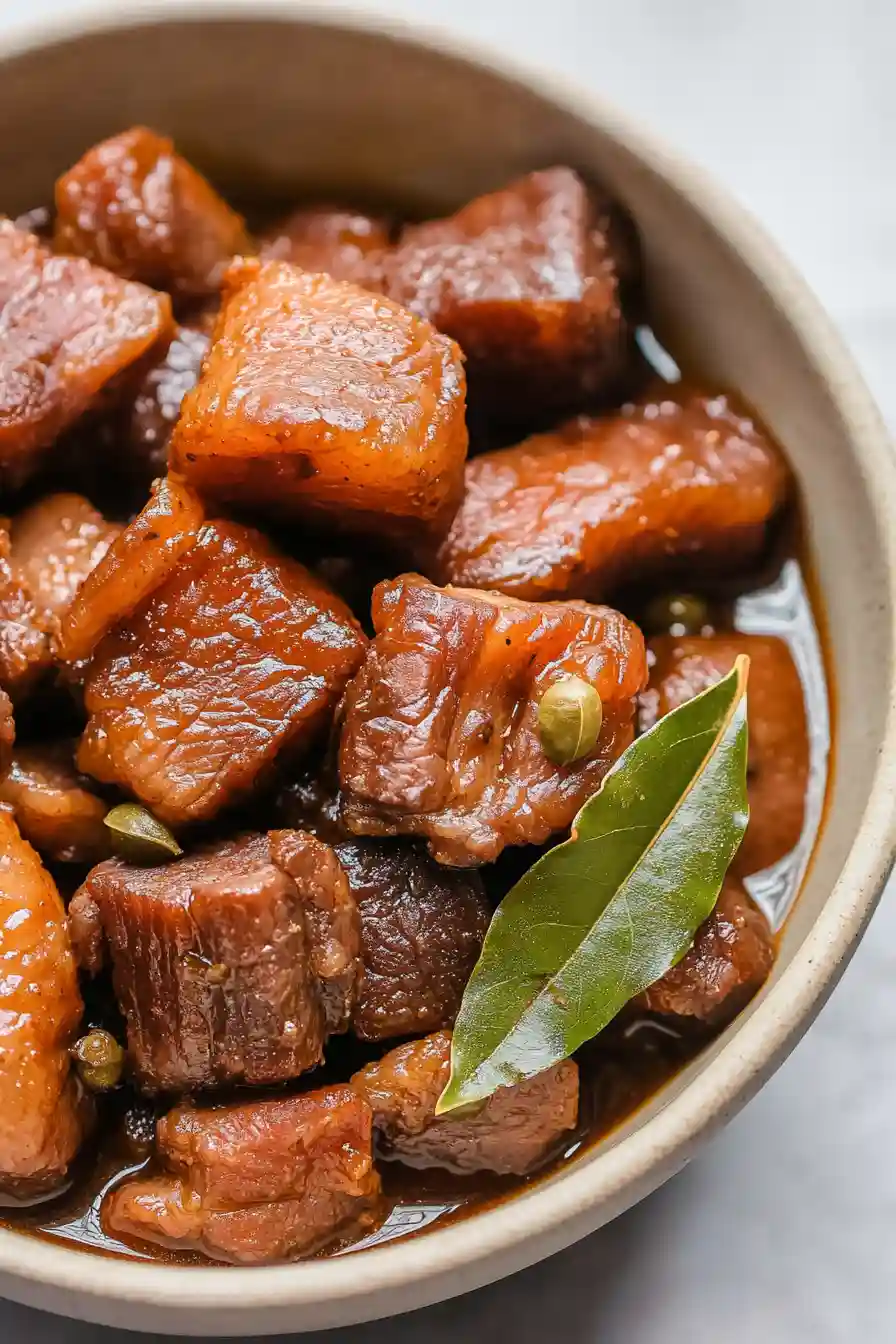 - Simple ingredients – This classic Filipino dish needs just a handful of pantry staples you likely already have – soy sauce, vinegar, garlic, and spices.