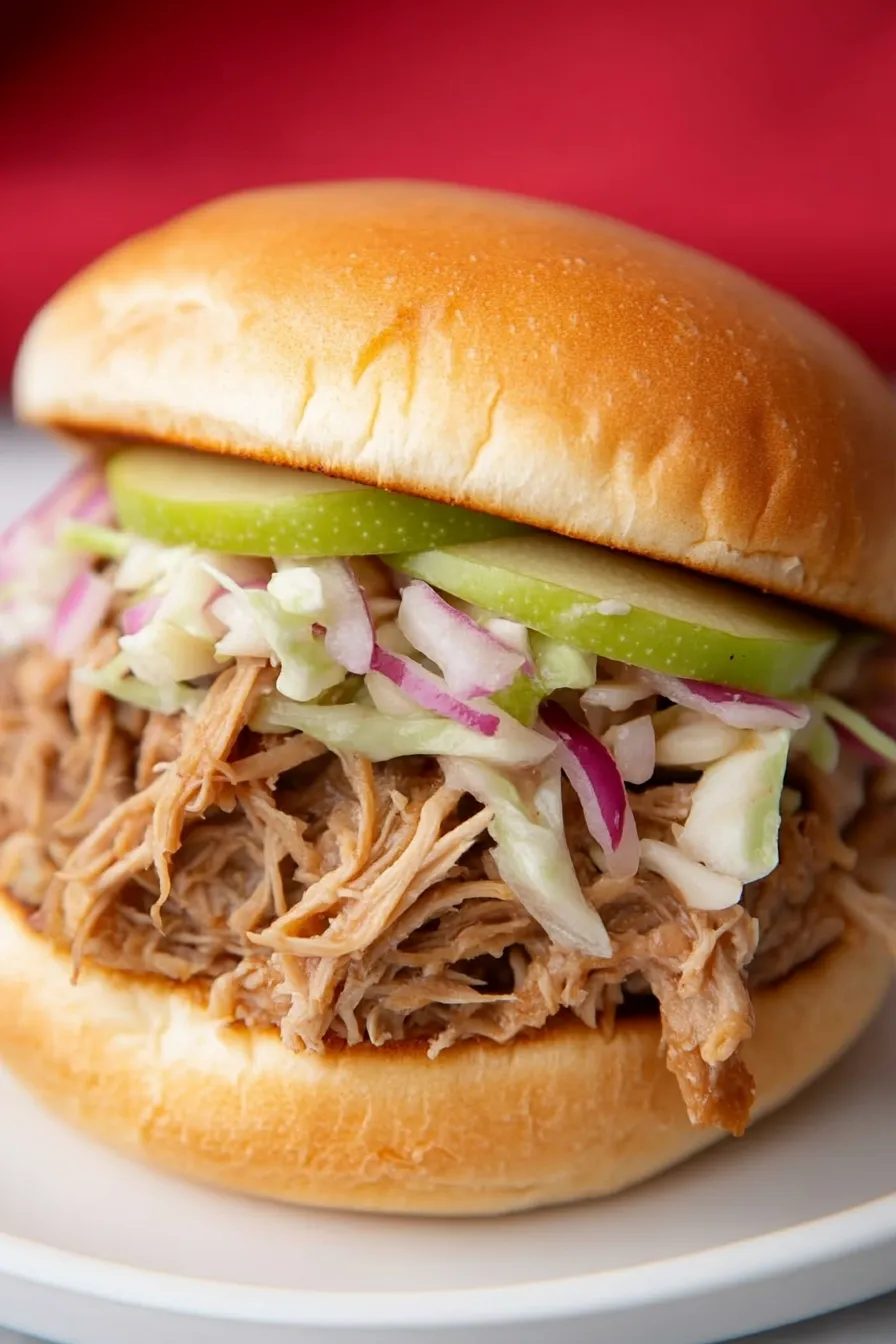 - Perfectly balanced texture – The tender, juicy pork pairs wonderfully with the crisp apple-cabbage slaw and soft challah rolls, giving you that perfect bite every time.