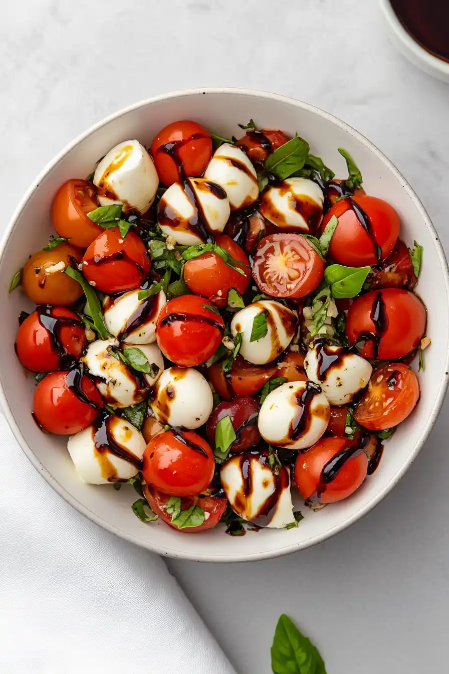 Keep Fresh: Got leftovers? Place your Caprese salad in an airtight container and pop it in the fridge for up to 2 days. Keep in mind that the tomatoes might release some juice and the basil may darken a bit, but it’ll still taste good! Pro tip: if you’re planning to make it ahead, keep the balsamic dressing separate until ready to serve.