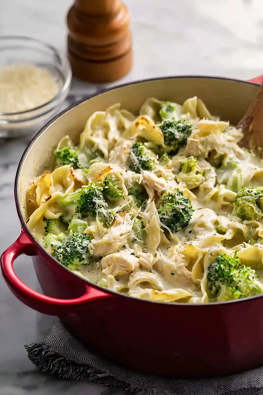 This soup is pretty hearty on its own since it’s loaded with chicken, noodles, and broccoli, but a side of warm garlic bread or buttery breadsticks is perfect for dipping. I like to keep a simple Caesar salad on the side to add some freshness and crunch to the meal. If you want to make it even more filling, you could serve it with a crusty baguette or some cheesy garlic toast. For a lighter option, roasted vegetables like asparagus or green beans work nicely alongside the creamy, rich flavors of the soup.