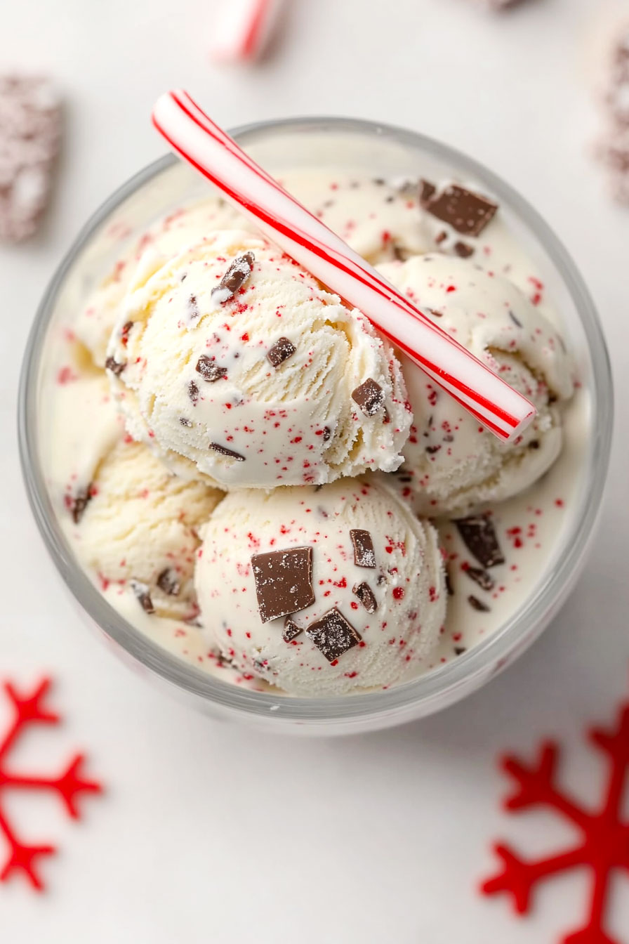 Peppermint bark can be replaced with crushed candy canes or peppermint candies for a similar flavor profile and texture. Use about 1 cup of crushed candies and adjust to taste. Full-fat milk can be substituted with non-dairy alternatives like almond or coconut milk for a lactose-free option. Choose unsweetened varieties and consider reducing the sugar slightly to account for any added sweetness. Granulated sugar can be swapped with a natural sweetener like stevia or erythritol for a lower-calorie version. Start with about 1/3 to 1/2 the amount of sugar called for and adjust to taste, as these sweeteners are more potent than regular sugar. When using alternative sweeteners, the texture of the ice cream may be slightly different, so consider adding a tablespoon of vodka to improve scoopability.