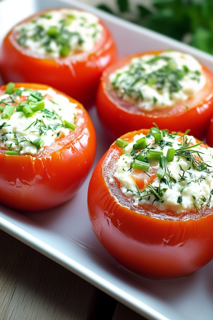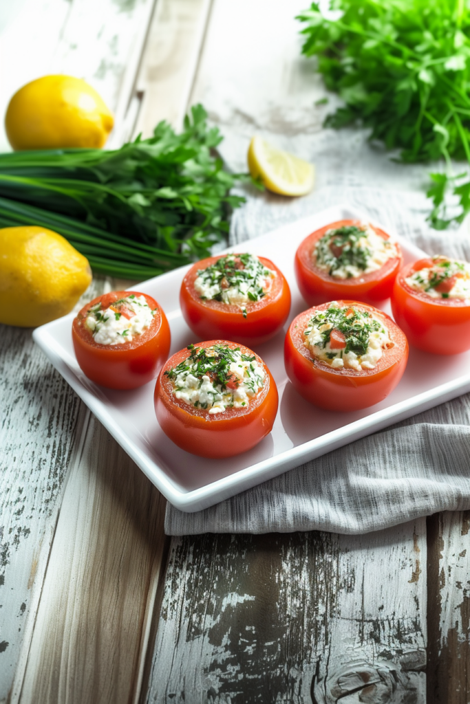 Arrange the stuffed tomatoes on a serving plate for a beautiful presentation.
