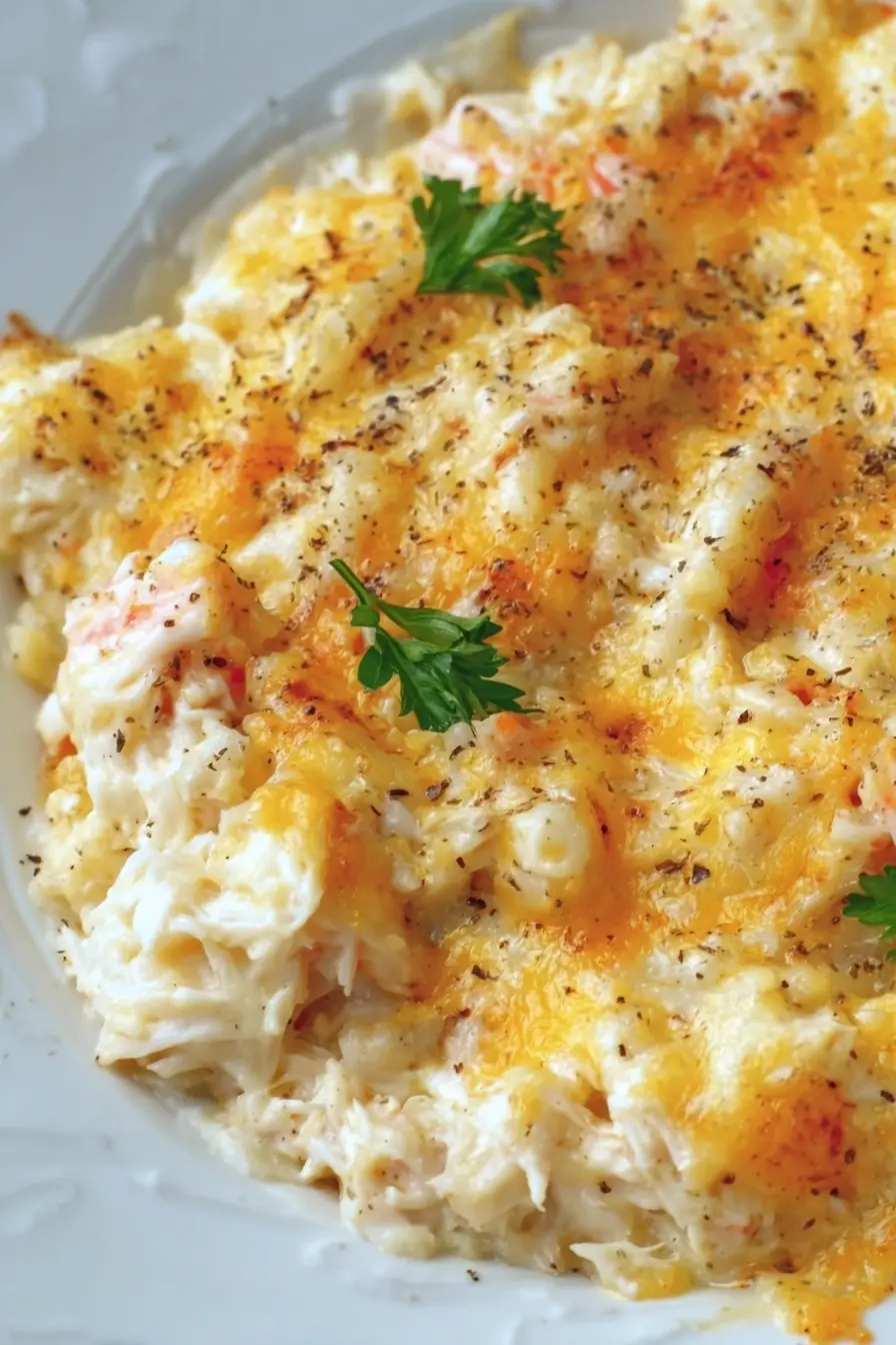 Enjoy your delicious, cheesy crab casserole!