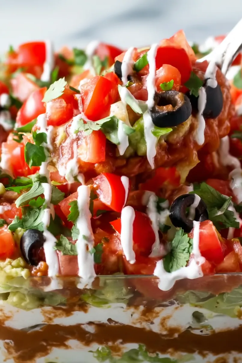A common error is rushing the layering process; take your time to spread each layer evenly to the edges of your serving dish, and if using guacamole, mix it with the lime juice immediately to prevent browning.