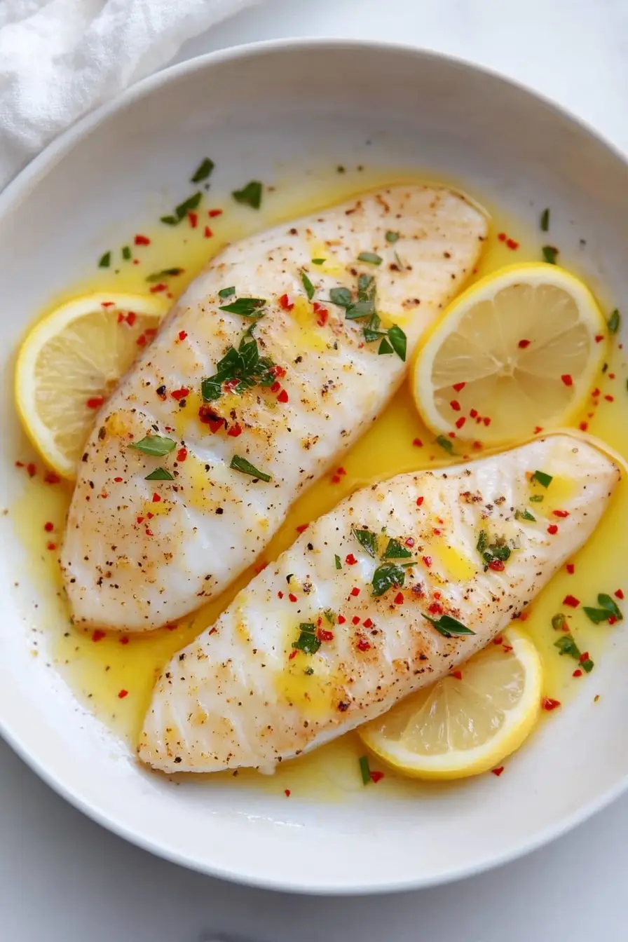 This light and lemony fish dish pairs perfectly with simple sides that won’t overpower its delicate flavors. Rice pilaf or fluffy couscous make excellent bases to soak up all that tasty garlic butter sauce. For vegetables, roasted asparagus or steamed broccoli work great – just pop them in the oven while your fish is cooking. I love serving this with a fresh green salad dressed simply with olive oil and lemon juice to echo the citrus notes in the fish. If you want to keep things super simple, some steamed white rice and sautéed green beans will do the trick just fine.