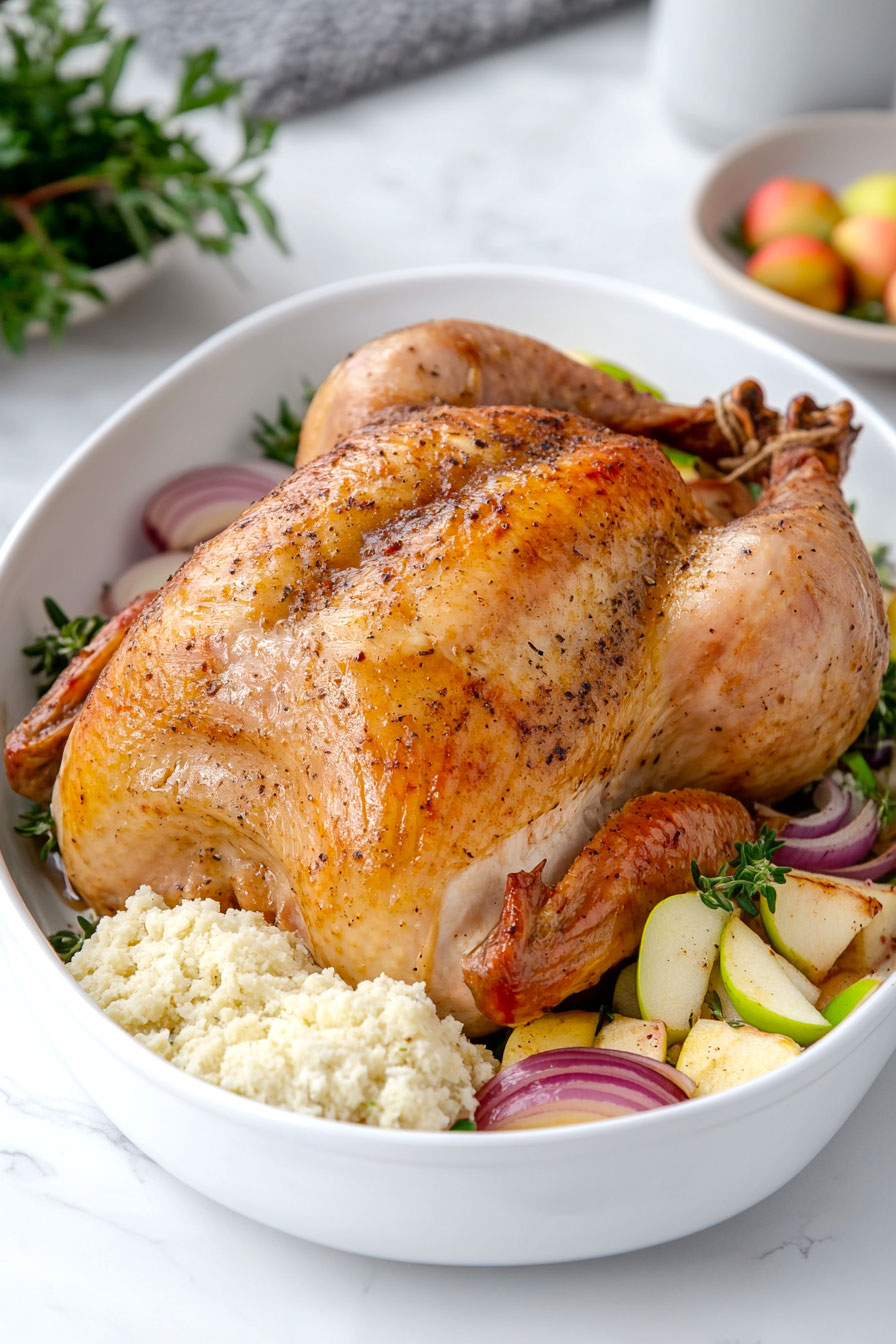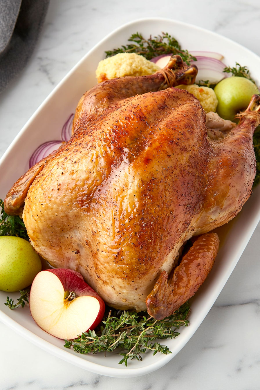 For the yellow onion, red onion or shallots can be used as alternatives, providing a slightly different but complementary flavor profile. These substitutions maintain the aromatic base while offering subtle variations in taste and color. The apple can be replaced with a pear or quince for a similar sweet-tart flavor and moisture content. These fruits will contribute to the overall taste and juiciness of the turkey. For those seeking a herb alternative, sage can be substituted for thyme or rosemary. Sage offers a similar earthy, aromatic quality and pairs well with poultry. Use slightly less sage than the recipe calls for thyme or rosemary, as its flavor can be more intense. When making these substitutions, maintain the same cooking method and adjust quantities based on personal taste preferences.