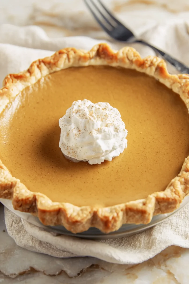 This pie is creamy, sweet, and a little different from the usual pumpkin pie.
