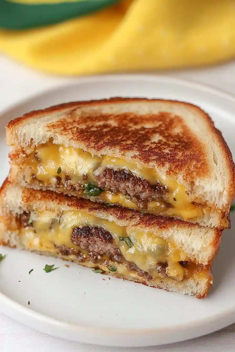This rich and cheesy sandwich calls for some classic sides that can hold their own against such a hearty main dish. French fries are the natural choice – either regular or sweet potato fries work great, and they’re perfect for dipping in any extra smash burger sauce you have on hand. For a lighter option that still brings some crunch, a simple coleslaw or dill pickle spears help cut through the richness of all that melty cheese and beef. If you’re feeling extra hungry, some crispy onion rings would be amazing alongside this sandwich, especially since there are already caramelized onions in the mix. Just remember to serve everything piping hot – there’s nothing better than that first bite of a warm, gooey grilled cheese with perfectly crispy sides!