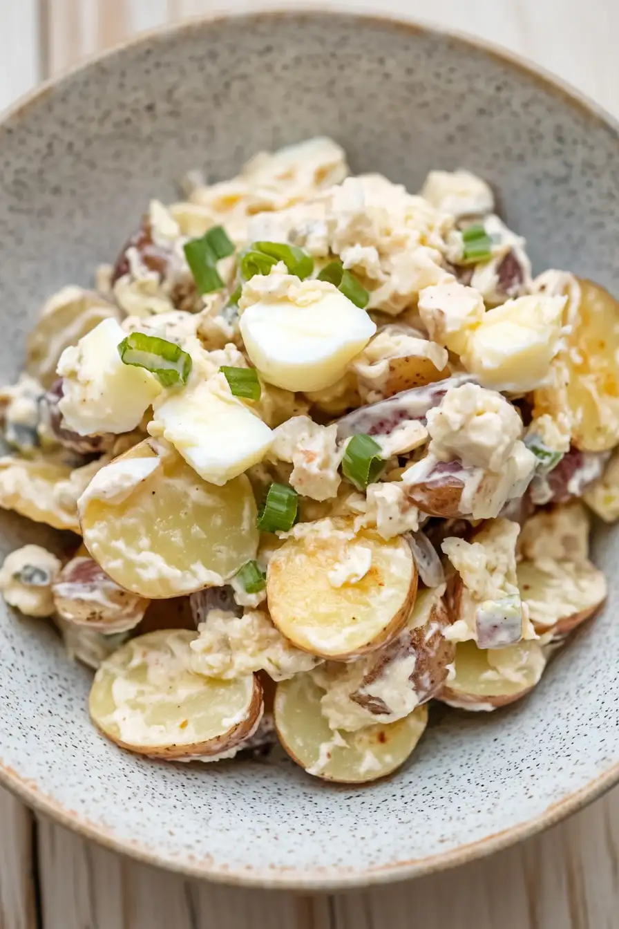 Serving Tip: Take the potato salad out of the fridge about 15 minutes before serving to take the chill off – the flavors come through better when it’s not super cold. Give it a quick stir before serving, and add an extra sprinkle of green onions on top if needed.