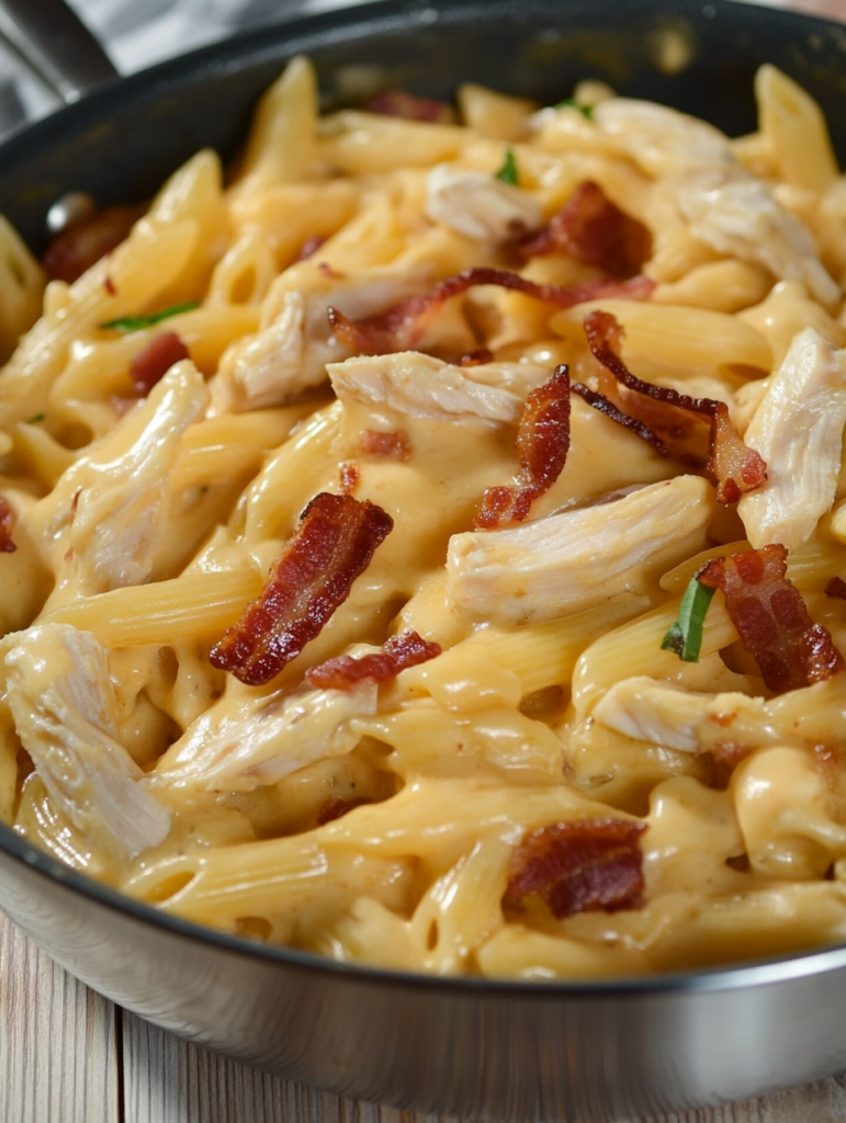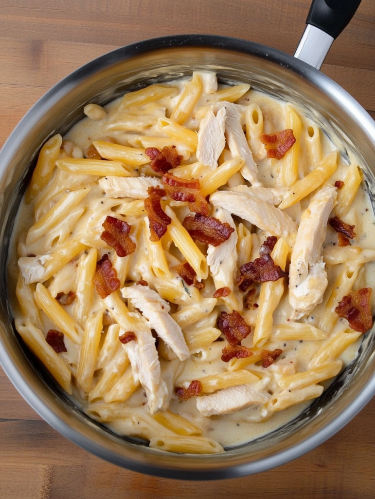 At this point, you can incorporate additional protein if desired, such as 12 oz of pre-cooked chicken and bacon bits.