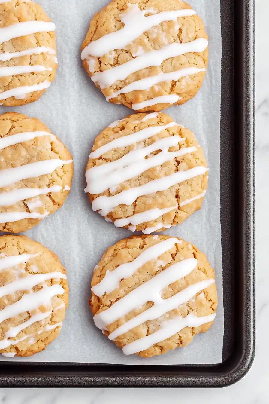 Once the cookies are fully cooled, drizzle the glaze over the tops.