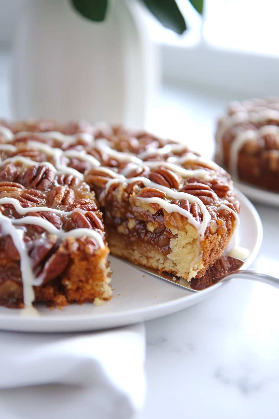 It’s the best of both worlds: rich, gooey pecan pie and a moist, fluffy cake.