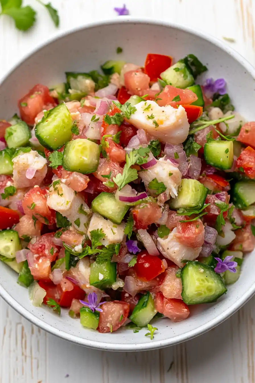 The biggest mistake when making ceviche is not using the freshest fish possible – always buy sushi-grade fish from a trusted source and keep it properly chilled until you’re ready to prepare the dish. The second common error is rushing the “cooking” process – the fish needs at least 2-3 hours to properly “cook” in the lime juice, and you’ll know it’s ready when the fish turns opaque and firm throughout. To ensure food safety, make sure to dice your fish into uniform, bite-sized pieces (about 1/2 inch cubes) so they “cook” evenly in the citrus juice, and always keep your ceviche refrigerated during the entire marinating process. For the best flavor balance, add the cucumber, tomatoes, and other vegetables just 30 minutes before serving – this keeps them crisp and prevents them from becoming too soggy from the lime juice.
