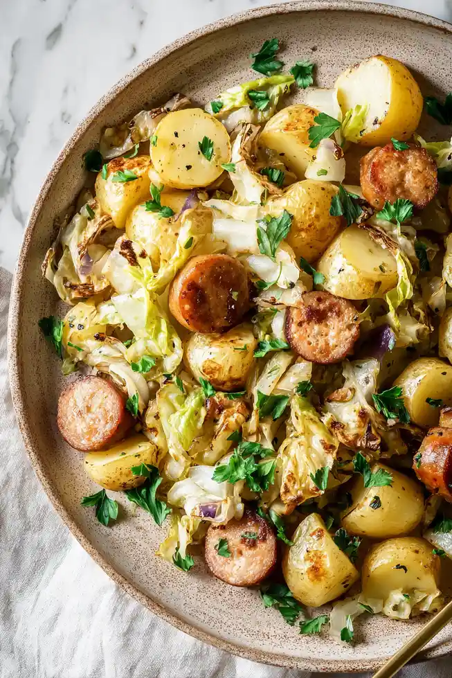 Today, I’m sharing my favorite dish: cabbage, potatoes, and sausage.