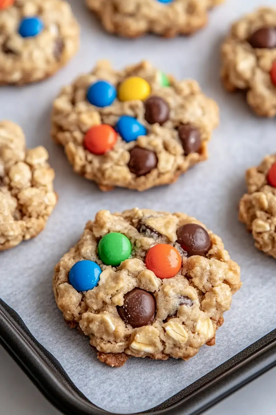 The biggest challenge with oatmeal monster cookies is overmixing the dough, which can make your cookies tough and dense – mix just until the ingredients are combined to keep them soft and chewy. Getting the butter temperature right is crucial too – if it’s too soft or melted, your cookies will spread too much and become flat; the butter should be just soft enough to leave a slight indent when pressed. Another common mistake is overbaking these treats – they might look slightly underdone when you take them out at 10-12 minutes, but they’ll continue cooking on the hot baking sheet, so remove them when the edges are just set and the centers still look a bit puffy. For the best texture, let the cookies cool on the baking sheet for 5 minutes before moving them to a wire rack – this allows them to set properly without breaking apart.