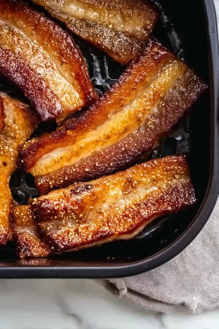 - Crispy texture – The air fryer creates perfectly crispy outer layers while keeping the inside tender and juicy – exactly what great pork belly should be.