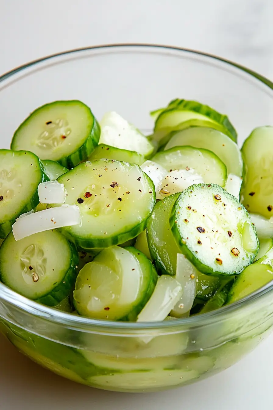 Make Ahead: Want to prep this salad in advance? You can slice the cucumbers and onions up to a day ahead and keep them separate from the dressing. When you’re ready to serve, just combine everything and give it about 30 minutes to marinate. This way, you’ll get that perfect balance of crunch and tang!