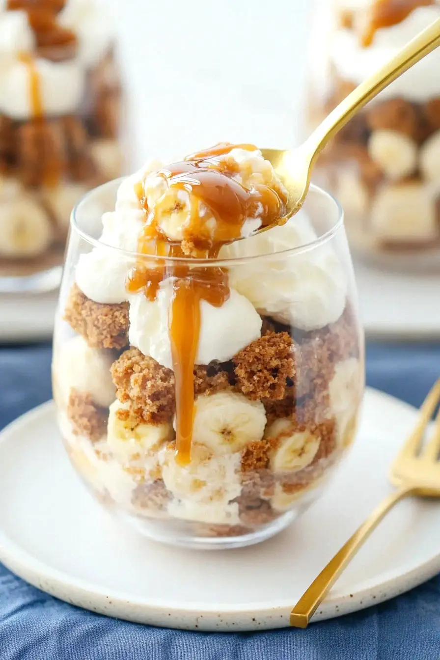 Keep Fresh: This banana bread trifle is best enjoyed within 24 hours of assembly. Keep it covered in the refrigerator to maintain its layers and prevent the cream from absorbing any fridge odors. The banana slices might brown a bit over time, but the caramel sauce helps slow this process down.