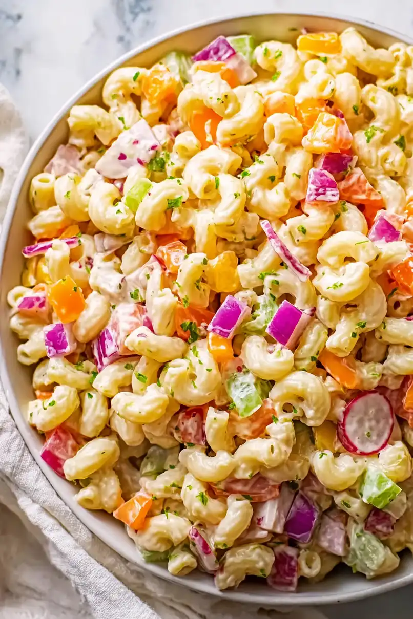 - Perfect potluck dish – With its creamy dressing and crowd-pleasing ingredients, this pasta salad travels well and is always a hit at picnics, barbecues, and gatherings.