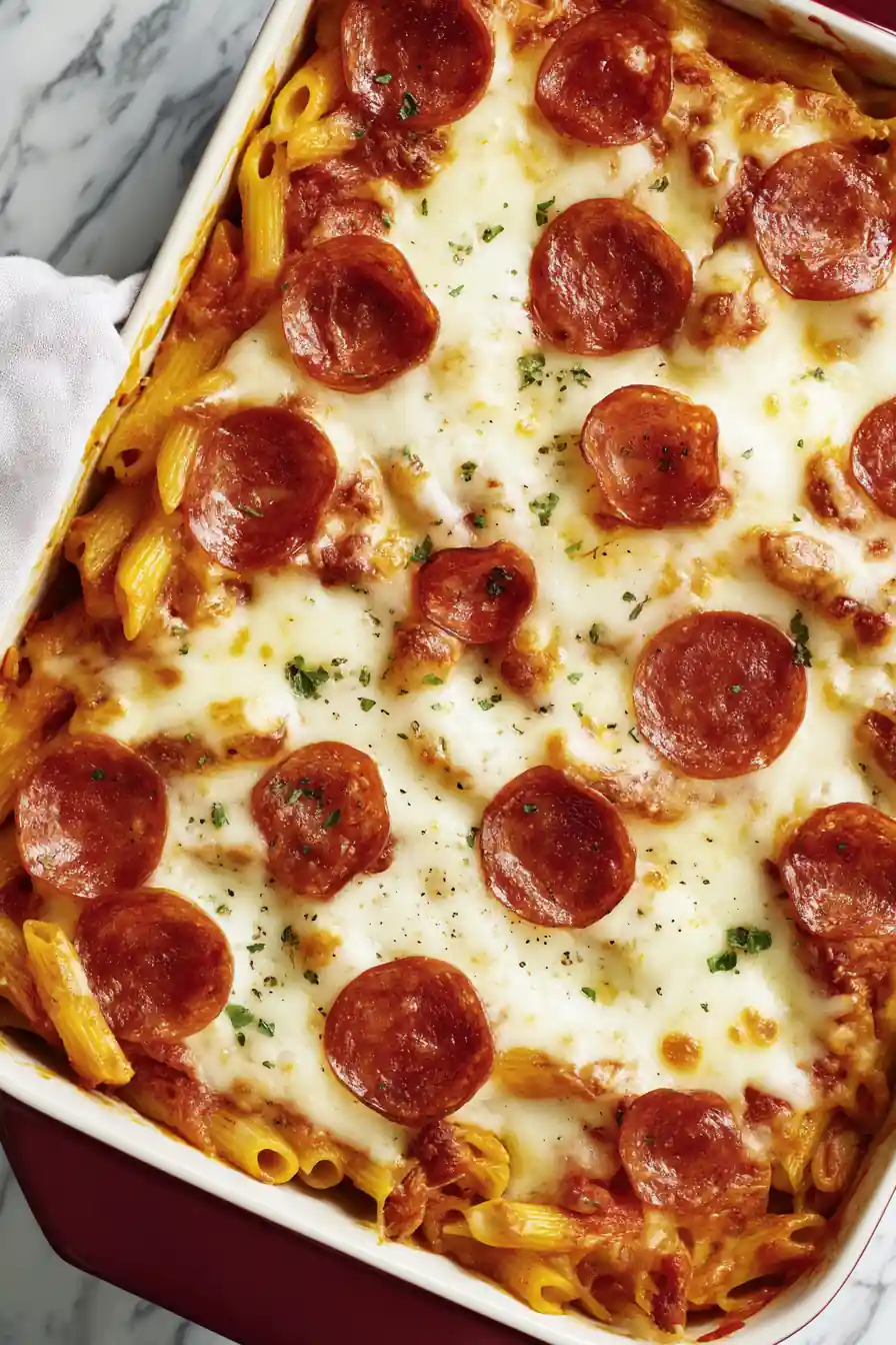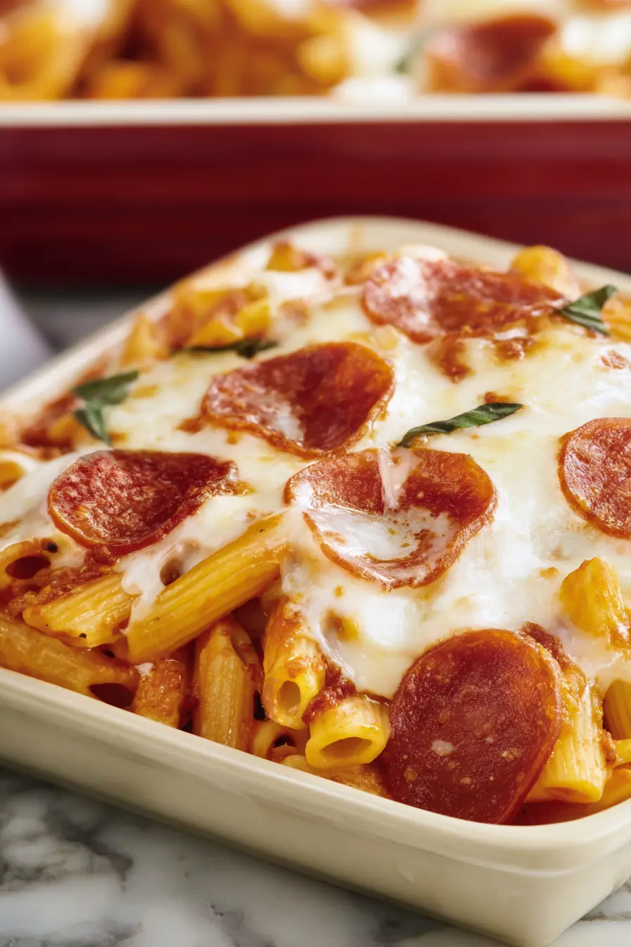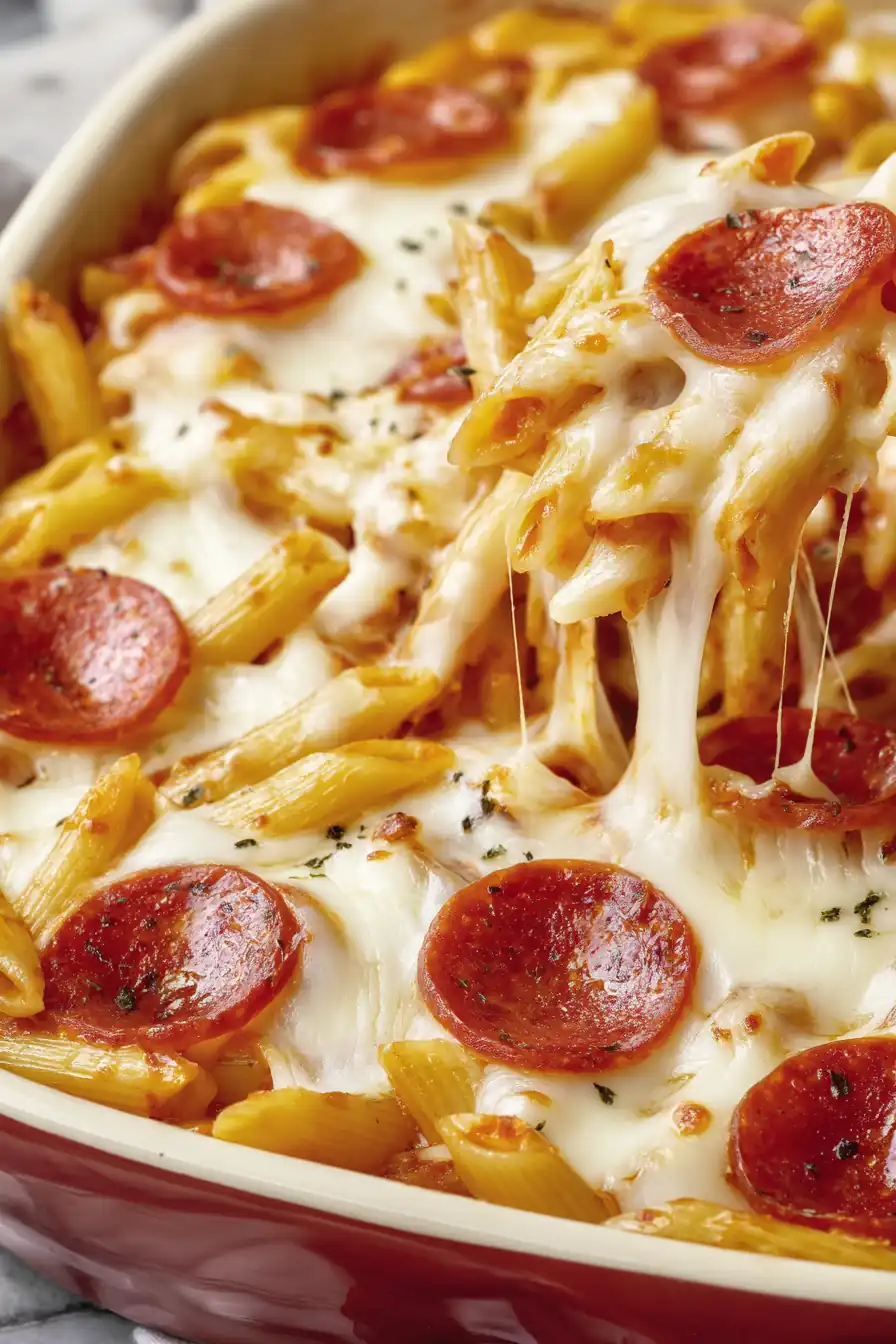 Enjoy your delicious, cheesy pepperoni pasta bake!
