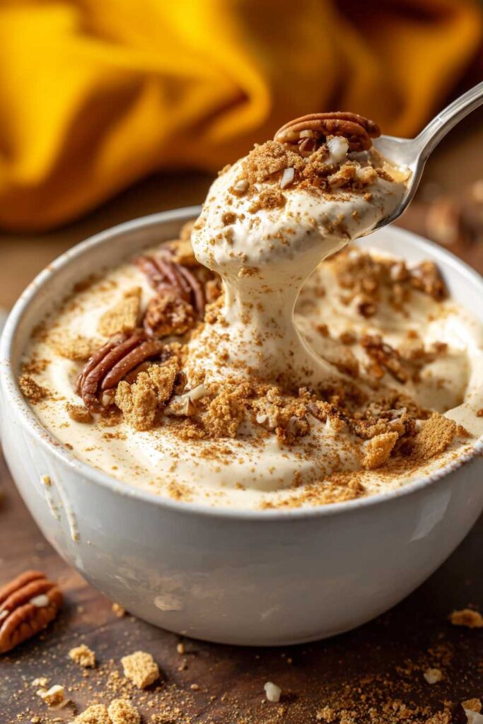 When you’re ready to serve, top the mixture with crumbled graham cracker and chopped pecans.