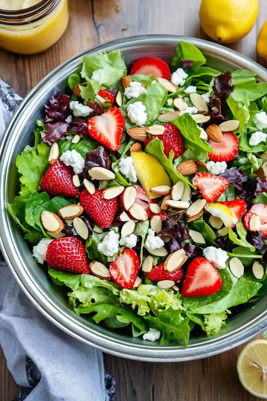 This fresh spring salad pairs wonderfully with grilled or roasted proteins to make it a complete meal. Try serving it alongside some herb-roasted chicken breast, grilled salmon, or even some simple garlic shrimp – the strawberries and goat cheese complement these proteins really nicely. For a vegetarian option, you could add some quinoa or chickpeas right to the salad, or serve it with a quiche or frittata on the side. I also love offering some crusty French bread or warm dinner rolls to round out the meal, especially since you’ll want something to soak up any extra dressing from your plate!