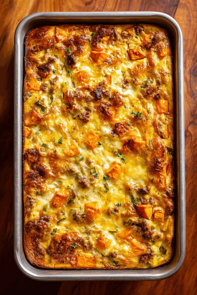 The biggest challenge when making sweet potato egg casserole is getting the sweet potatoes cooked properly – they need to be cut into uniform, small cubes (about 1/2 inch) to ensure they cook evenly and completely before the eggs set. Another common mistake is overcrowding the pan when cooking the sweet potatoes and sausage, which leads to steaming instead of browning – work in batches if needed to get that nice golden color and deeper flavor. To prevent a watery casserole, make sure to drain any excess liquid from the sausage and vegetables before combining with the eggs, and avoid over-mixing the eggs which can make them tough and rubbery. For the best texture, let the casserole rest for 5-10 minutes after baking to allow the eggs to set completely, and consider covering with foil if the top browns too quickly while baking.