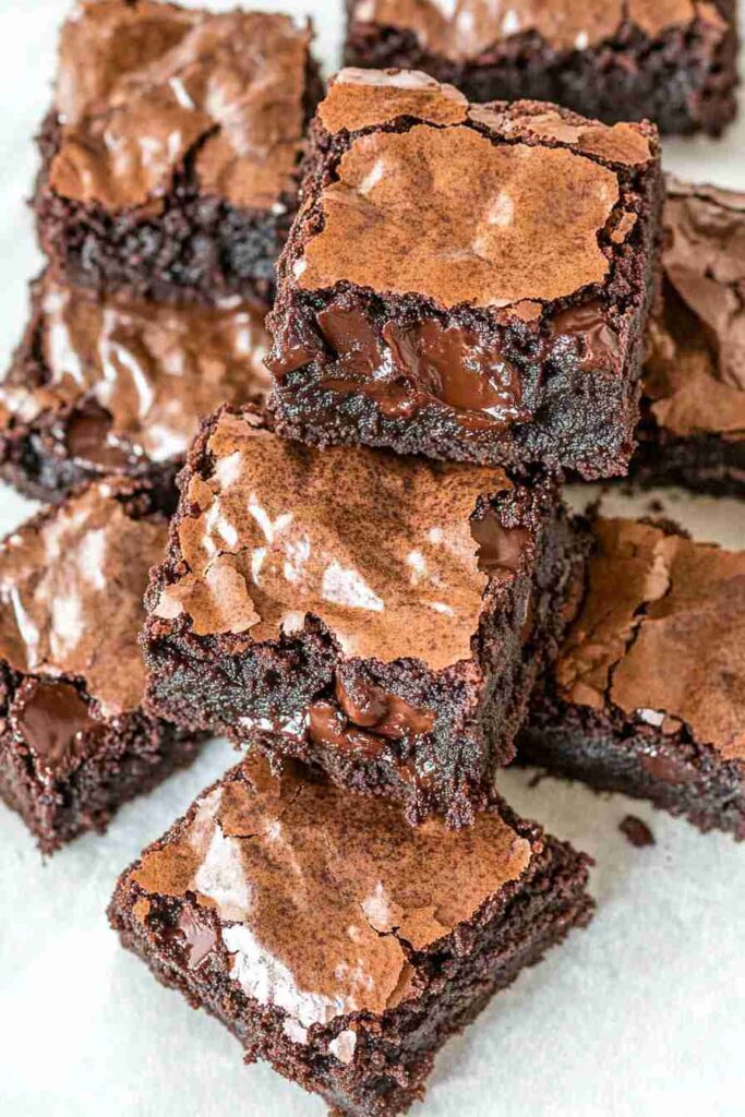 A slight sink in the middle is normal for these brownies due to the Greek yogurt and lower sugar content. The edges typically rise a bit more than the center, but this doesn’t affect the taste at all. In fact, that slightly sunken middle often becomes the fudgiest, most delicious part of the brownie!