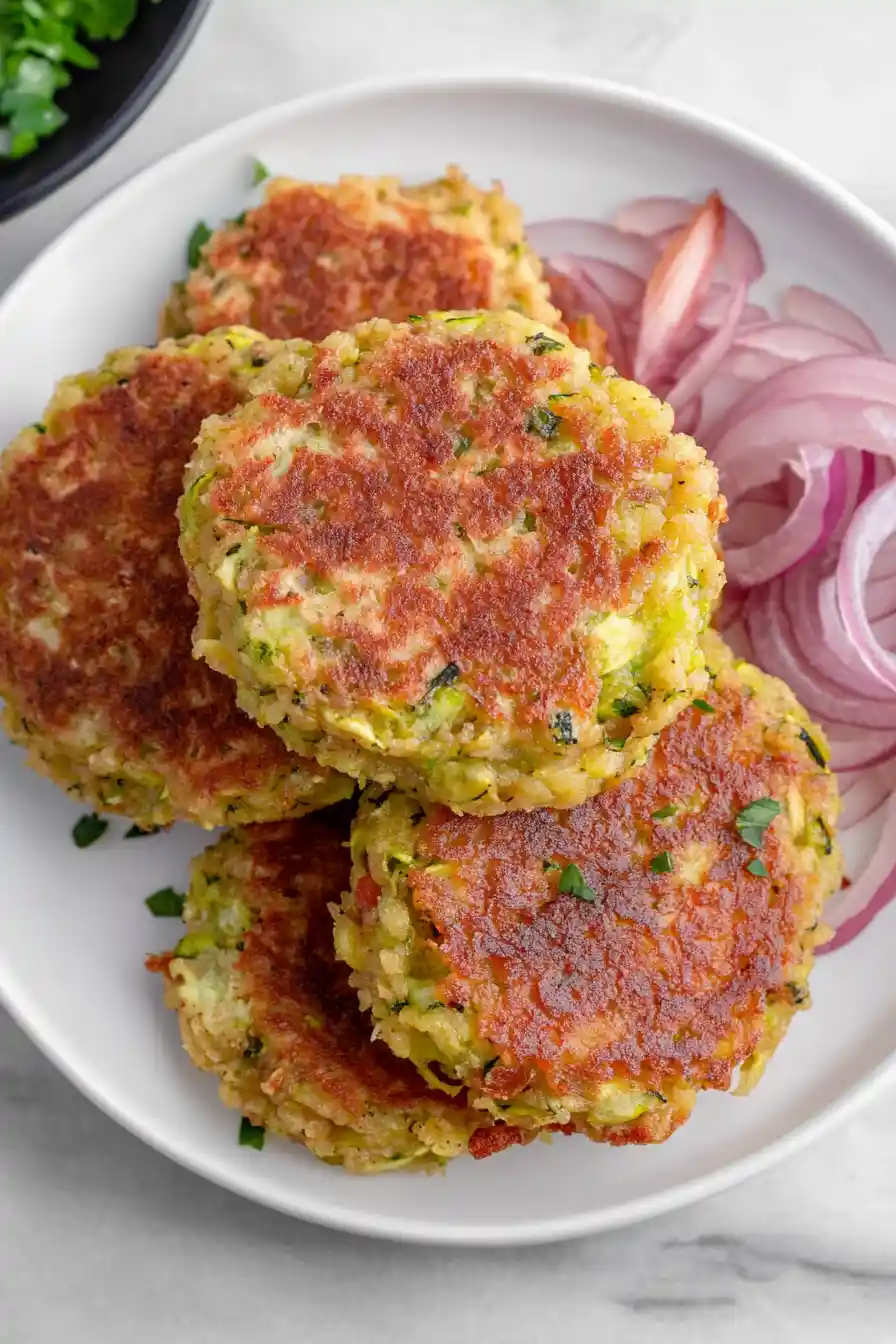 These crispy fritters make a great main dish or appetizer, and they pair really well with a variety of dips and sides. A cooling yogurt sauce with cucumber and fresh herbs is perfect for dipping – just mix Greek yogurt with grated cucumber, minced garlic, and fresh dill or mint. For a complete meal, serve these fritters on top of a fresh green salad with cherry tomatoes and a light lemon vinaigrette. If you want to keep things simple, they’re also great with just a squeeze of lemon juice and a dollop of hummus or tahini sauce on the side.