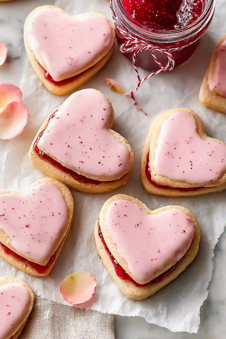 These heart-shaped cookies are perfect alongside a cup of hot tea or coffee for an afternoon treat. I love serving them at brunch with fresh berries and whipped cream on the side, or packing them up as sweet gifts for friends and family. They’re also great for Valentine’s Day parties paired with strawberry lemonade or champagne for the adults. If you want to make it extra special, serve them with vanilla ice cream or a simple fruit salad to balance out the sweetness.