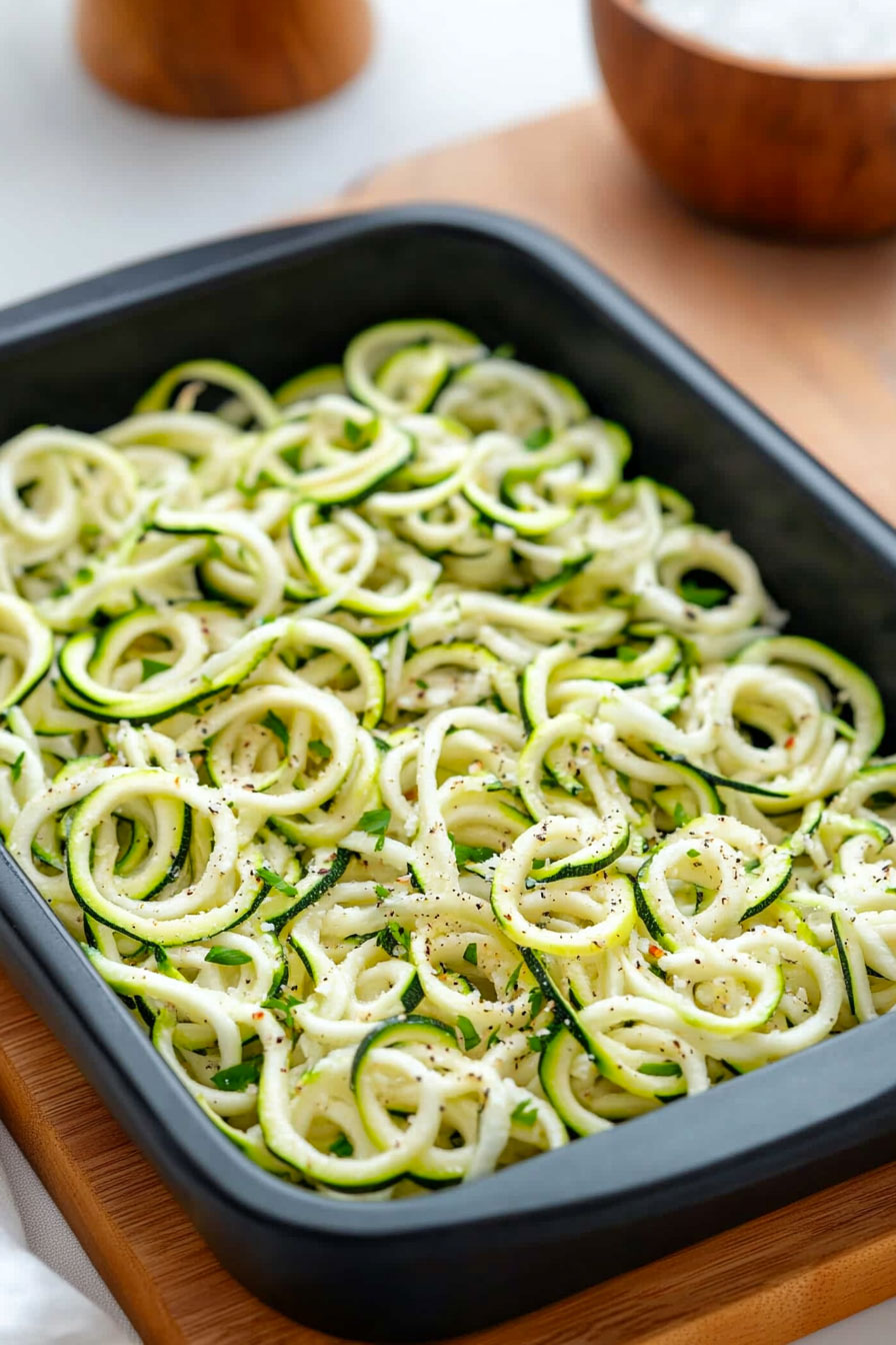 For zucchini, yellow summer squash or cucumber can be used as alternatives, offering similar textures and mild flavors. These substitutions work well in spiralized dishes and maintain a low-carb profile. Carrots or sweet potatoes can also be spiralized for a different nutritional profile and flavor, though cooking times may need adjustment. Extra virgin olive oil can be replaced with avocado oil or grapeseed oil, both of which have high smoke points suitable for baking. These oils provide similar heart-healthy fats and neutral flavors. For those seeking a lower-fat option, vegetable broth or a small amount of water can be used, though this may affect the final texture. Salt can be substituted with herb blends or nutritional yeast for a salt-free version, adding flavor while reducing sodium content. Adjust quantities to taste, as these alternatives may have different potency levels compared to salt.