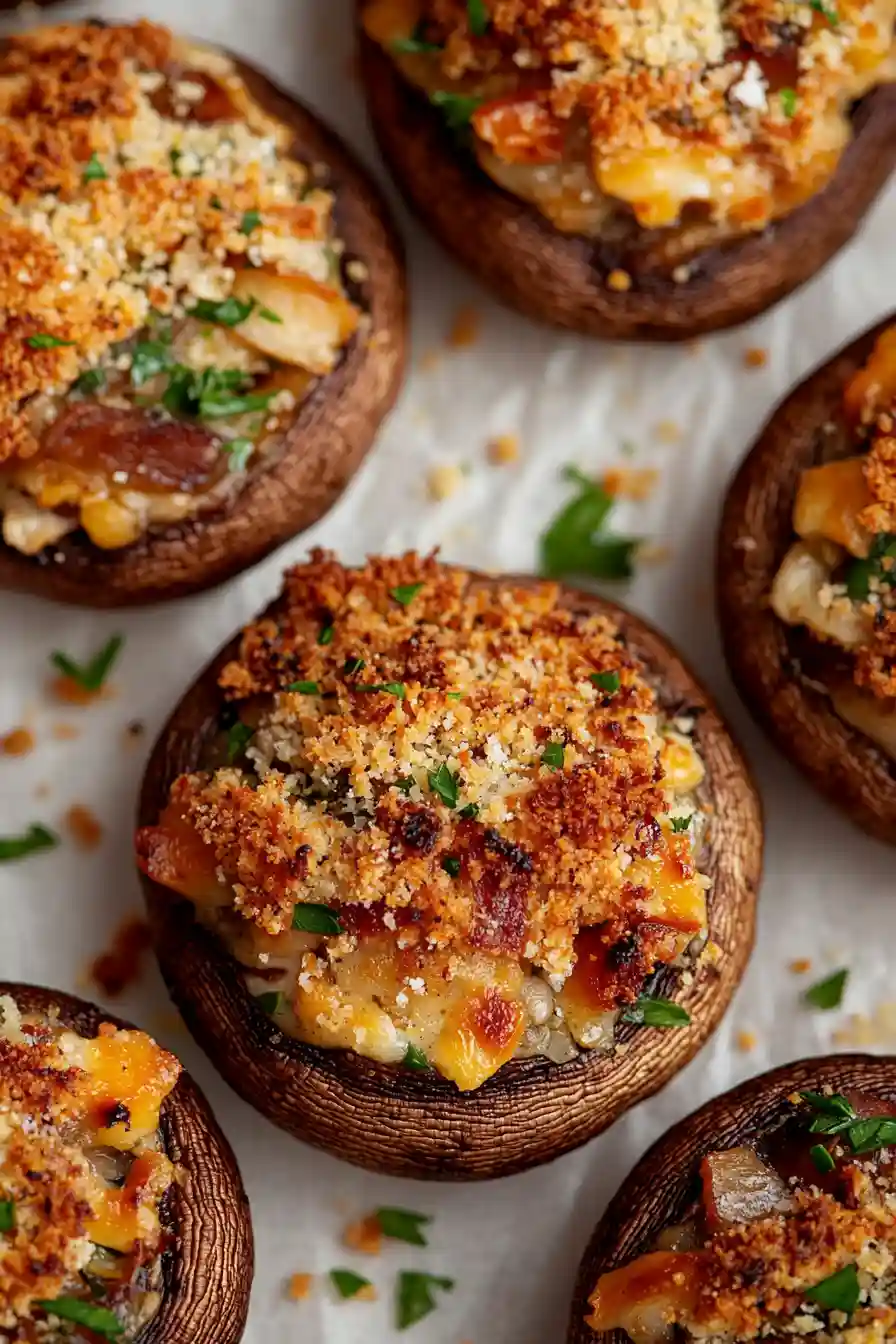 - Crowd-pleasing appetizer – The combination of garlic, parmesan, and herbs creates a savory filling that makes these mushrooms disappear fast at any party.