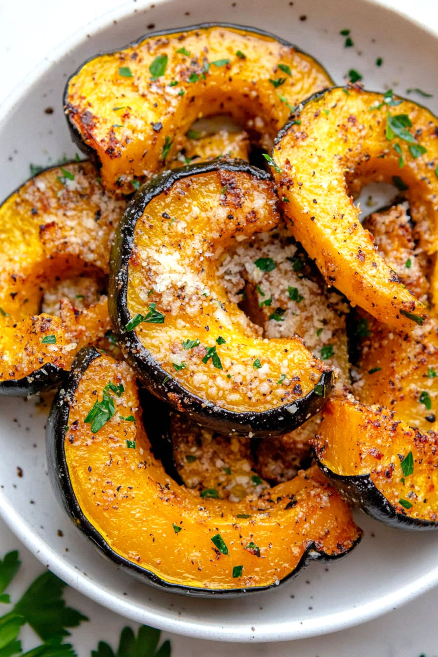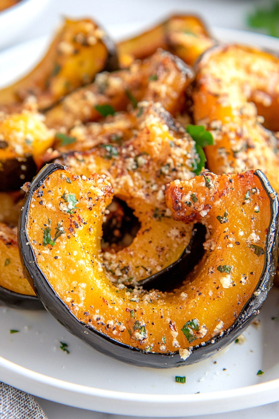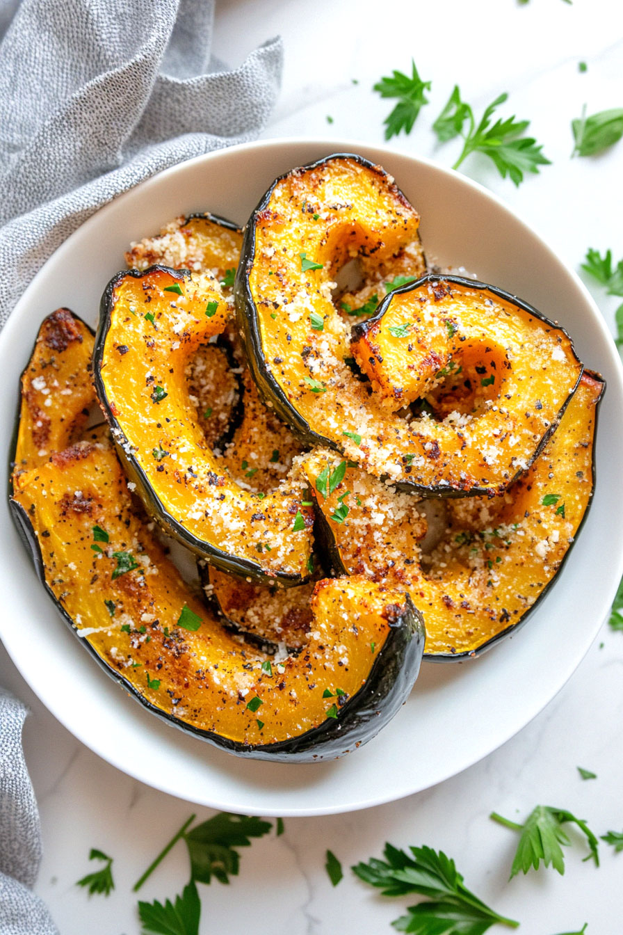 For the acorn squash, butternut squash or delicata squash can be used as alternatives. These winter squashes have similar textures and flavors, though cooking times may need slight adjustment. Extra virgin olive oil can be replaced with avocado oil or melted coconut oil for different flavor profiles and potential health benefits. Use the same amount as called for in the recipe. Parmesan cheese can be substituted with nutritional yeast for a vegan option, providing a similar umami flavor and cheesy texture. Start with half the amount of nutritional yeast and adjust to taste, as it’s more concentrated than parmesan. For those avoiding dairy, this substitution also reduces the recipe’s saturated fat content.