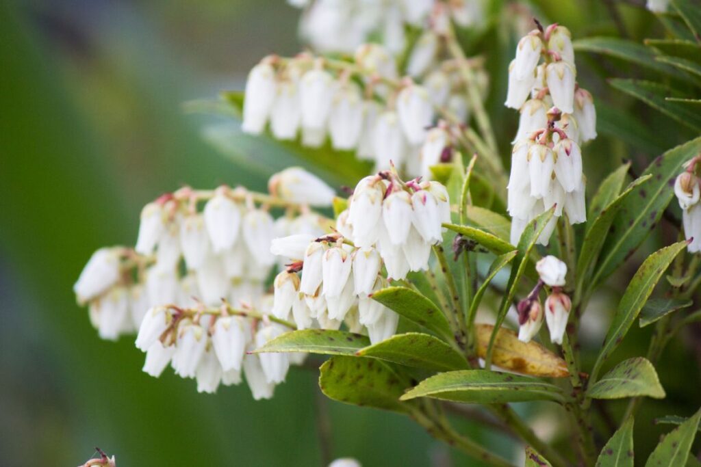 The bell-shaped blossoms of Pieris, appearing in green or white, are a treat in late winter. Once they fade, small fruits emerge, giving your garden a unique look. Partially shaded spots and some protection from high winds will help this plant thrive.