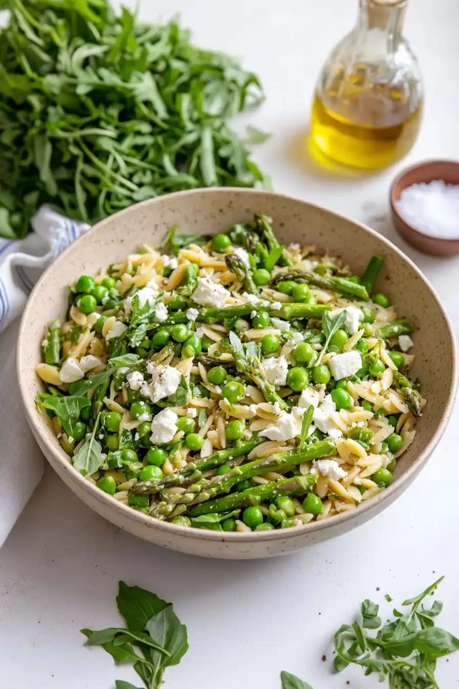 - Fresh spring ingredients – Loaded with seasonal vegetables like asparagus, peas, and fresh herbs, this salad brings the best spring flavors to your table.