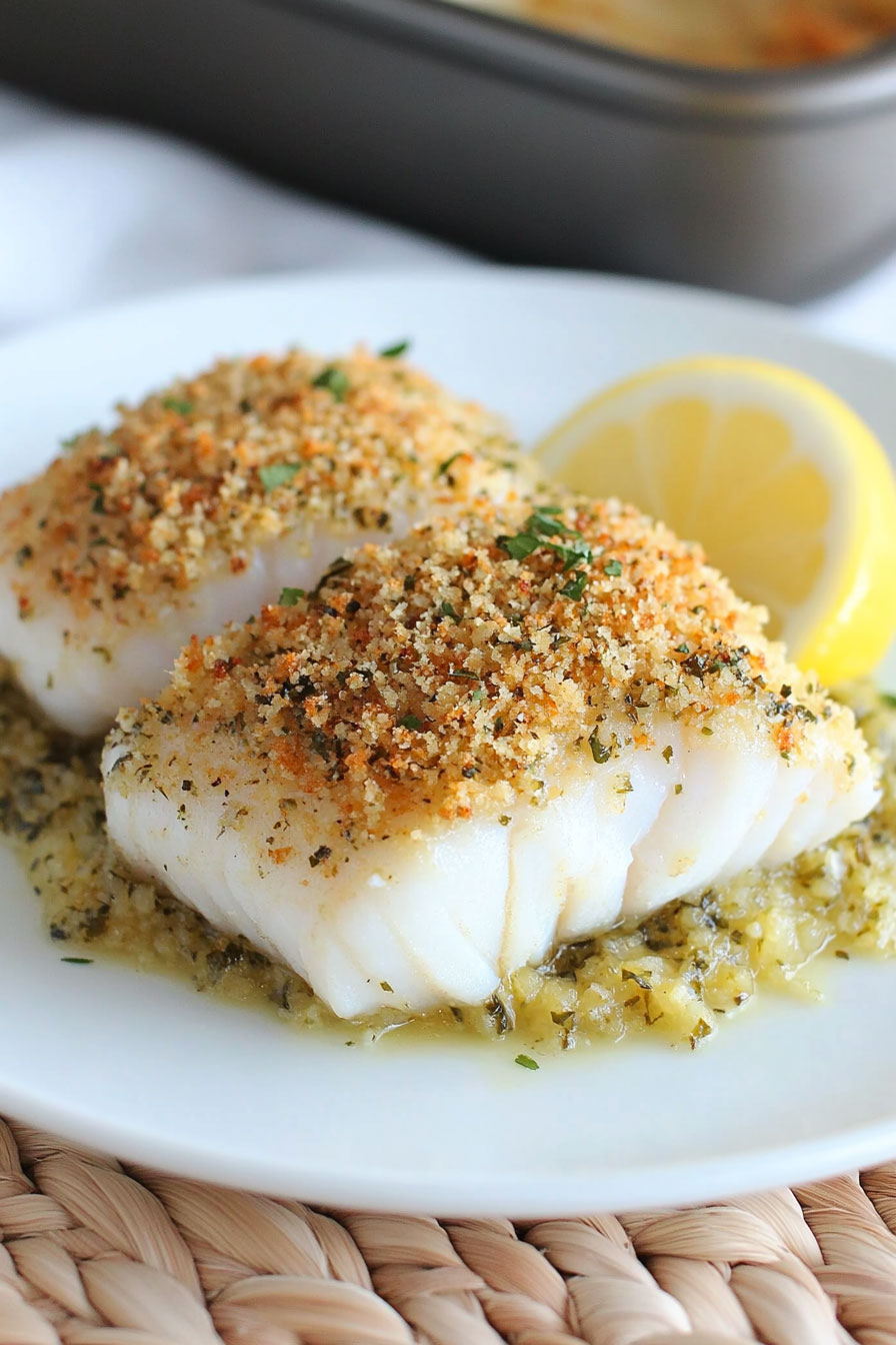 What’s better than plain baked cod? A flaky cod fillet topped with buttery, garlicky Ritz crackers!