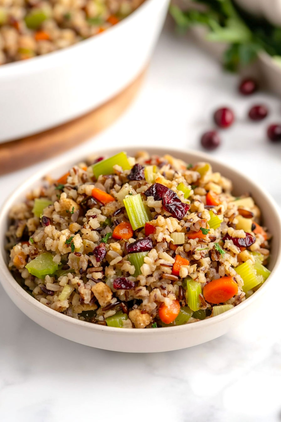 Growing up, stuffing at our house always meant the same boxed mix year after year. It wasn’t bad, but it wasn’t exactly memorable either. My first taste of homemade wild rice stuffing came at a friend’s house during college, and I couldn’t believe what I’d been missing. The nutty flavor of wild rice paired with roasted chestnuts was nothing like the mushy bread cubes I was used to.