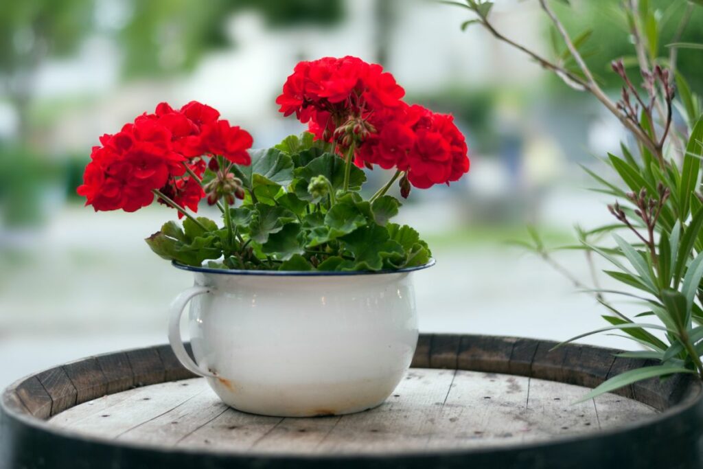 When selecting a container for geraniums, you must consider root space and the tendency of these plants to flourish even when slightly restricted in growth. A medium-sized container that won’t necessitate immediate upsizing will strike the perfect balance.